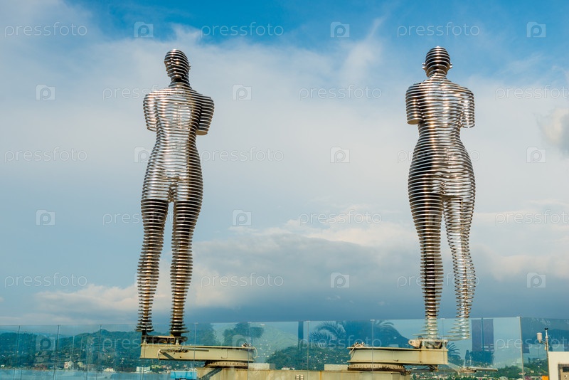 Металлическая скульптура под названием «Мужчина и женщина или Али и Нино против голубого неба»