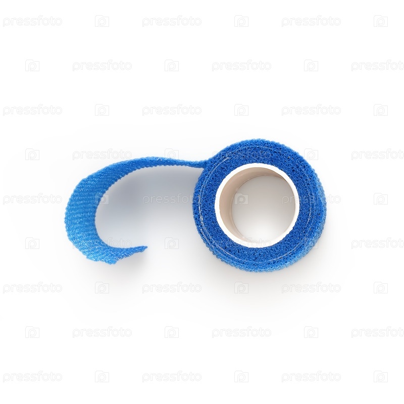 Голубая эластичная повязка для фиксации повязки на ране. Изолированный на белом фоне