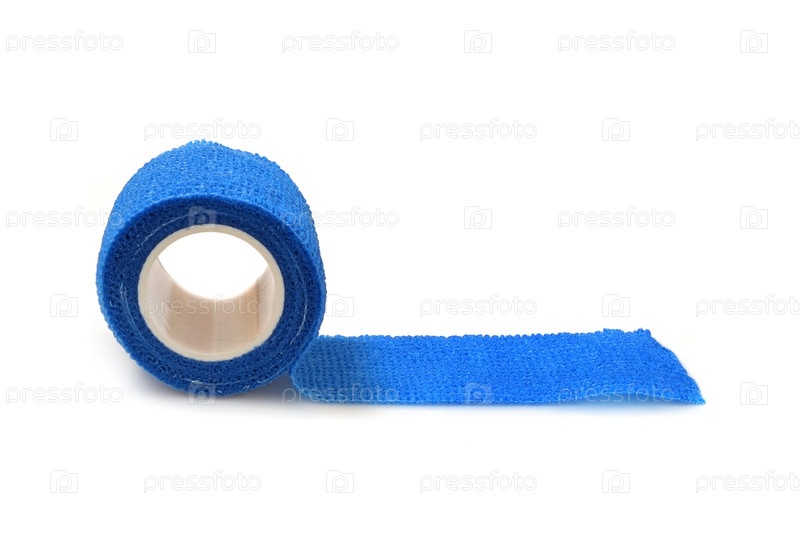 Голубая эластичная повязка для фиксации повязки на ране. Изолированный на белом фоне