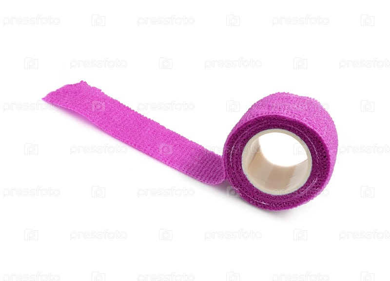 Розовая эластичная повязка для фиксации повязки на ране. Изолированный на белом фоне