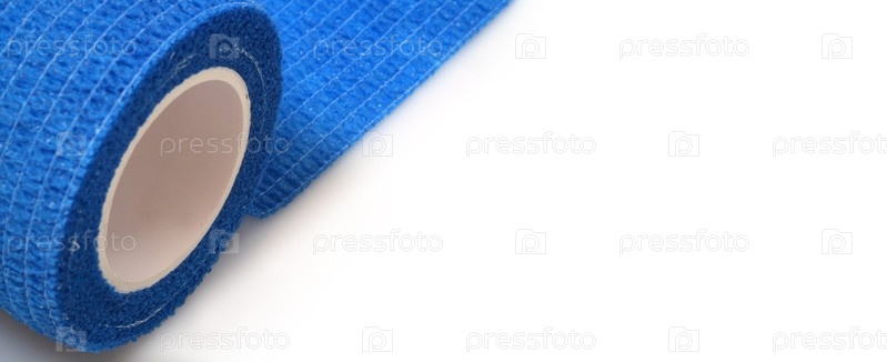 Голубая эластичная повязка для фиксации повязки на ране. Изолированный на белом фоне