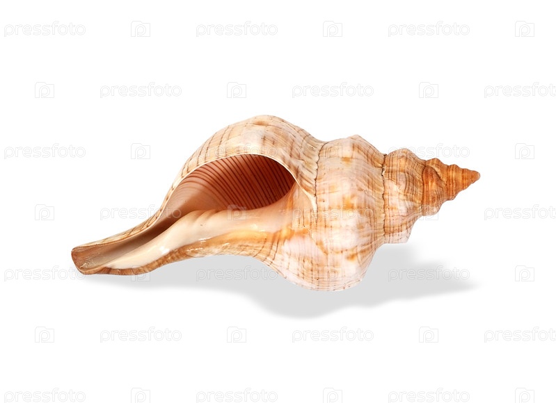 Природная морская раковина изолирована на белом фоне. Элемент дизайна с обрезкой пути