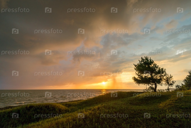Красивый оранжевый закат на морском пейзаже
