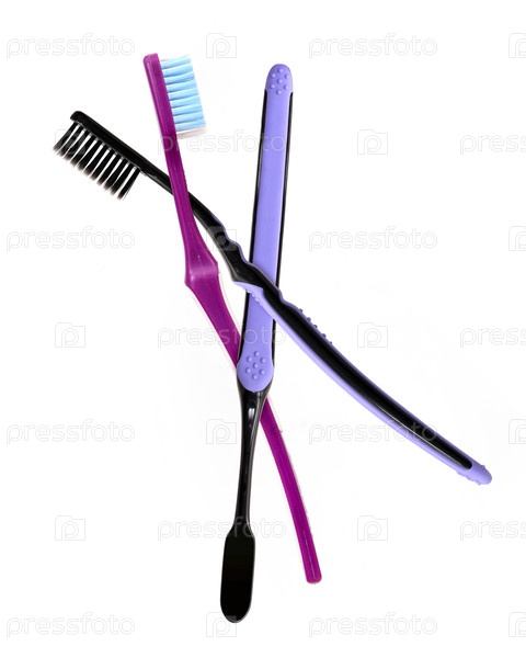 Фиолетовые зубные щетки выделены на белом фоне