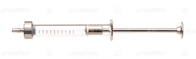 Старый стеклянный медицинский шприц изолирован на белом фоне