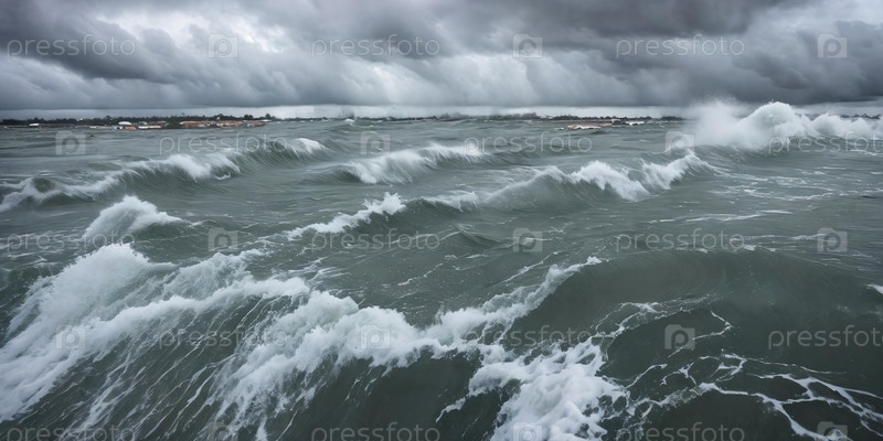 Мощь разрушительного урагана, захватив огромный штормовой нагон, наводняющий прибрежные районы, демонстрирует неустанную силу гнева природы. Панорама