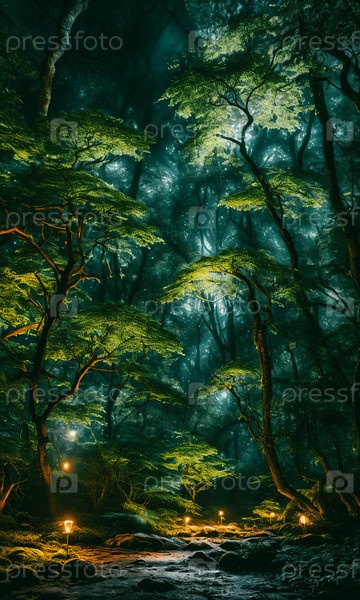 Лунная лесная поляна. Среди древних деревьев лунный луч освещает скрытую поляну. Поцелованные росой грибы светятся мягко, а светлячки танцуют ночью. Эфирная красота этого мистического места встречи