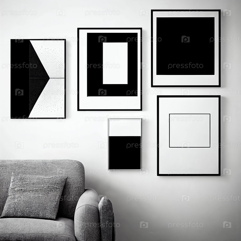 Масштабный снимок абстрактной печати современного искусства, висящей на монохромной стене
