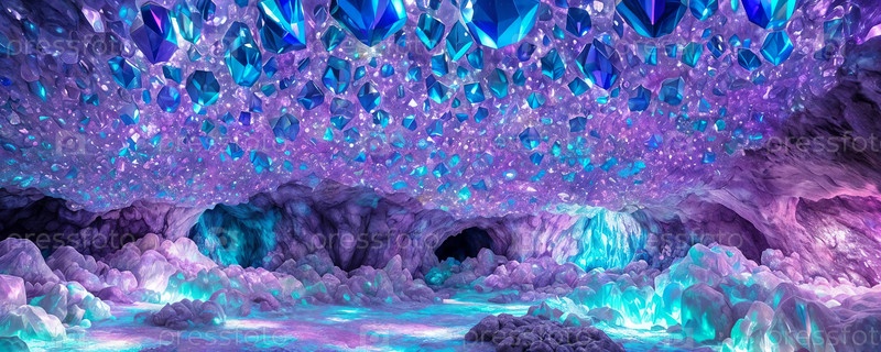 Кристаллическая пещера, подземный мир, наполненный мерцающими кристаллическими образованиями и иридами