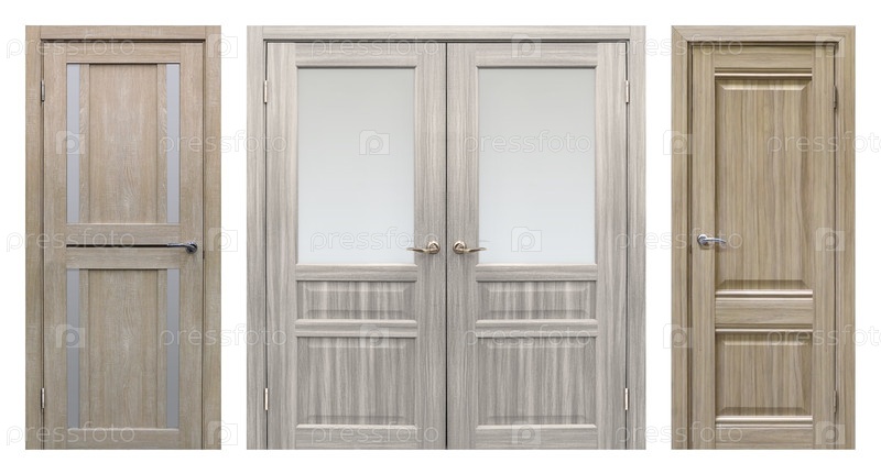 Набор входных дверей (внутренние деревянные двери) изолирован на белом фоне
