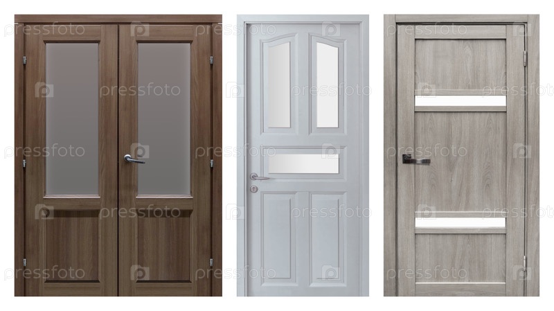 Набор входных дверей (внутренние деревянные двери) изолирован на белом фоне