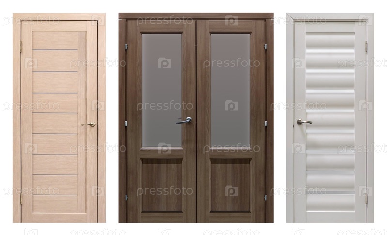 Набор входных дверей (внутренние деревянные двери) изолирован на белом фоне