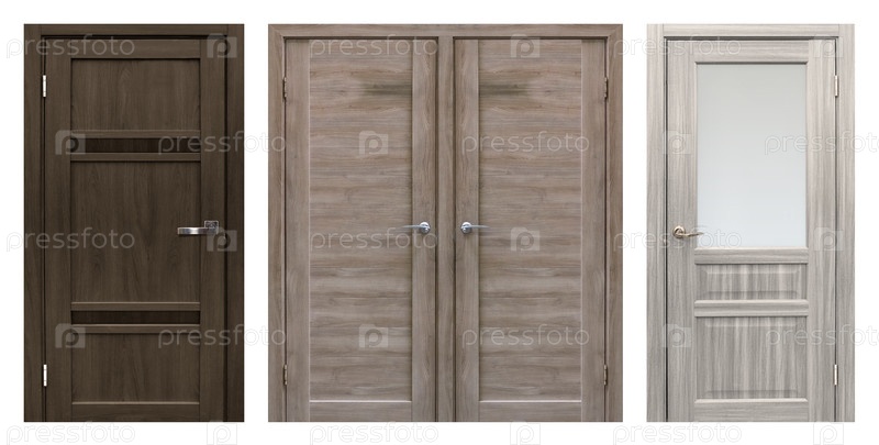 Набор входных дверей (внутренние деревянные двери) изолирован на белом фоне