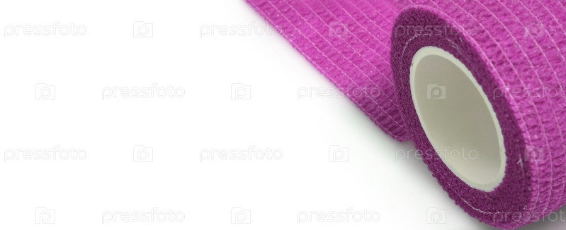 Розовая эластичная повязка для фиксации повязки на ране. Изолированный на белом фоне
