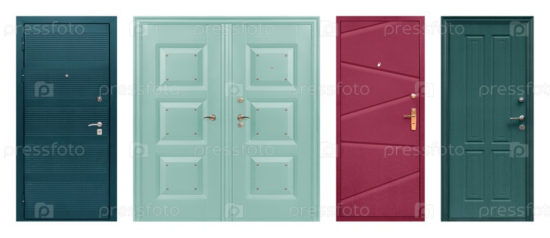 Набор моделей входных металлических дверей изолирован на белом фоне