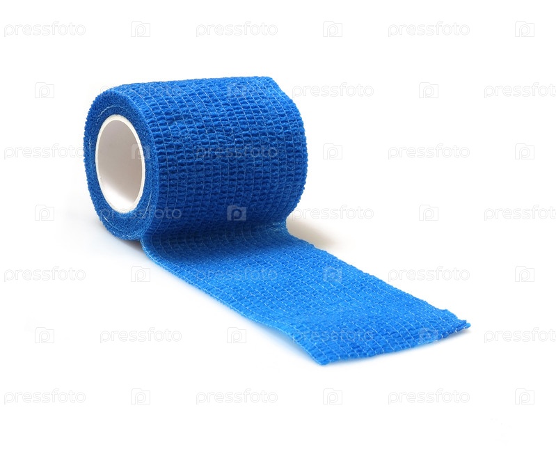 Голубая эластичная повязка для фиксации повязки на ране. Изолированный на белом фоне