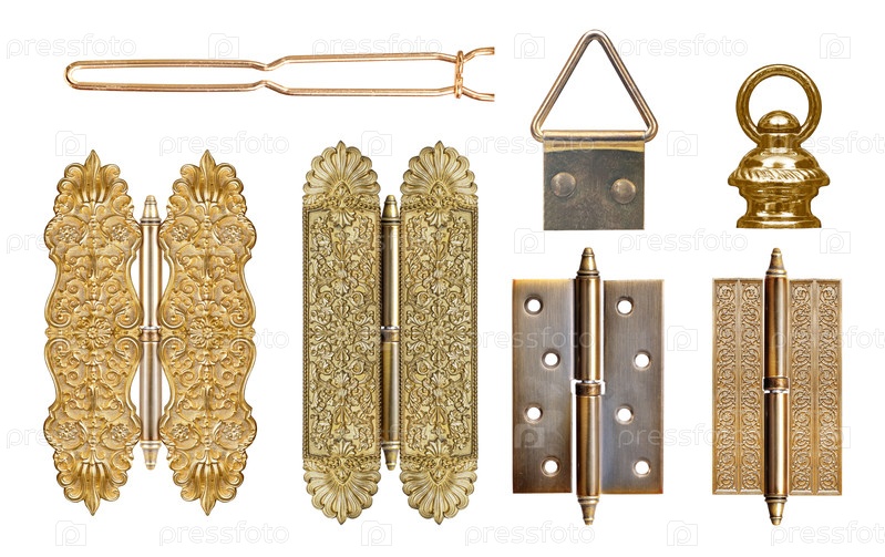 Длинный мебельный шарнир изолирован на белом фоне
