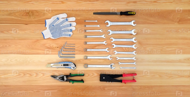 Различные инструменты для ручной работы, изолированные на деревянной доске