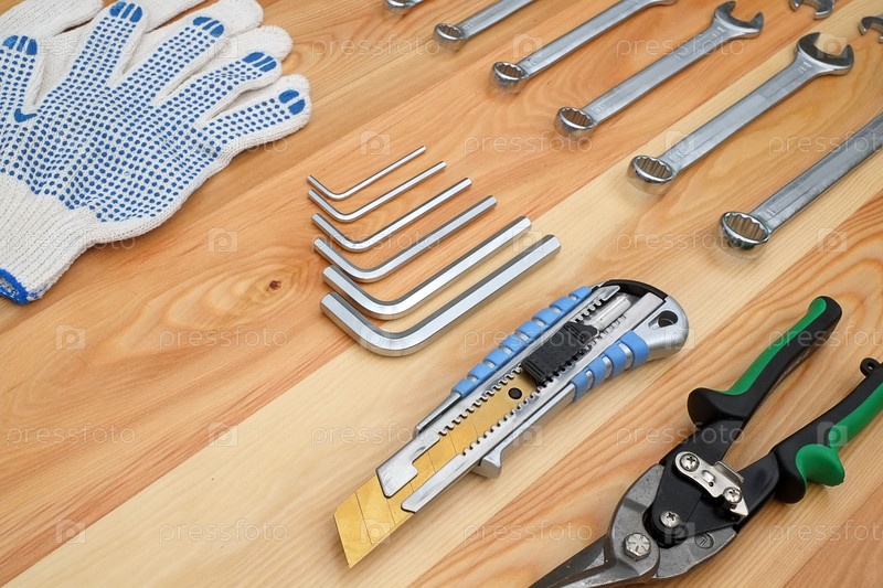 Различные инструменты для ручной работы, изолированные на деревянной доске