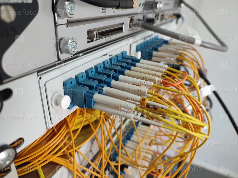Оптический кросс в стойке.Информационные технологии. Волоконно-оптические сети