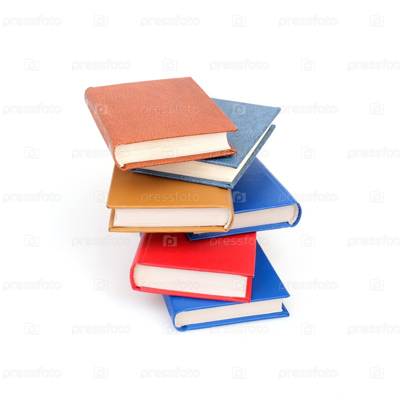 Стек книг в цветных обложках с белыми листами, изолированными на белом фоне
