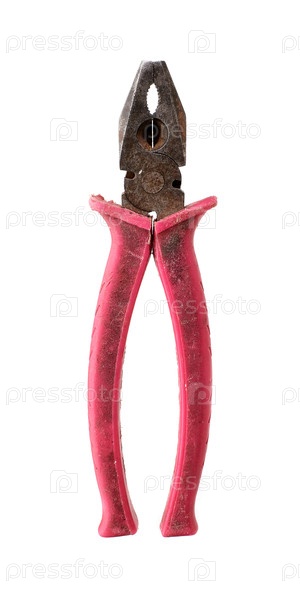 Изолированные ручные инструменты для ремонта и монтажа: старые плоскогубцы (композиция на белом фоне)