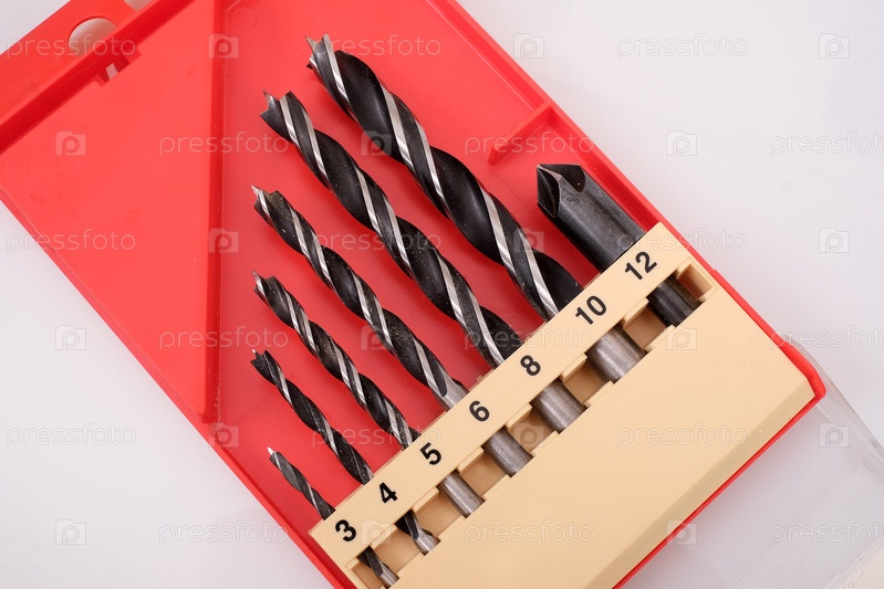 Буровые биты в случае выделены на белом фоне