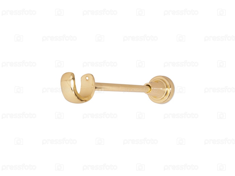 Золотая кронштейн-установка карниза (поддержка) изолирована на белом фоне. Элемент дизайна с обрезкой пути