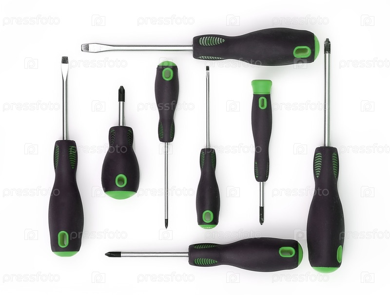 Ручные инструменты для ремонта и установки: отвертка Изолированный на белом фоне