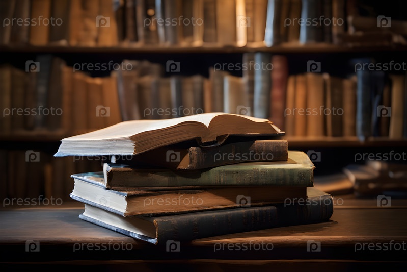 Пачка изношенных старинных книг на уютном уголке для чтения