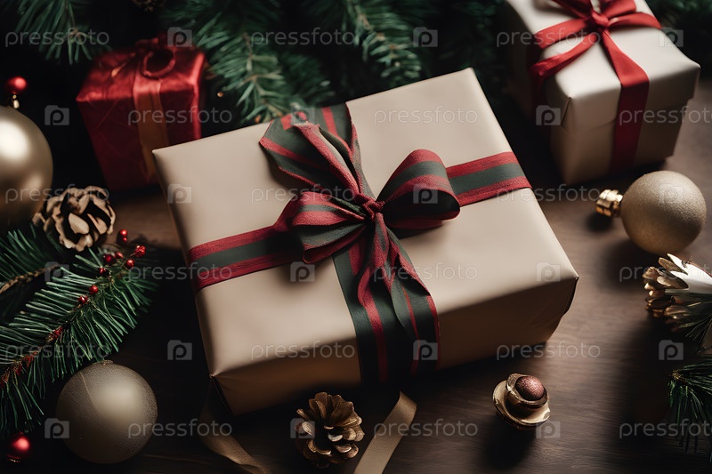 Закрыть вид на элегантно завернутые рождественские подарки и украшения