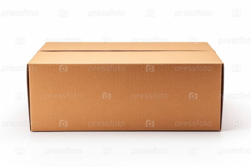 Закрыть вид пустой картонной коробки на белом фоне для макета, копировать пространство