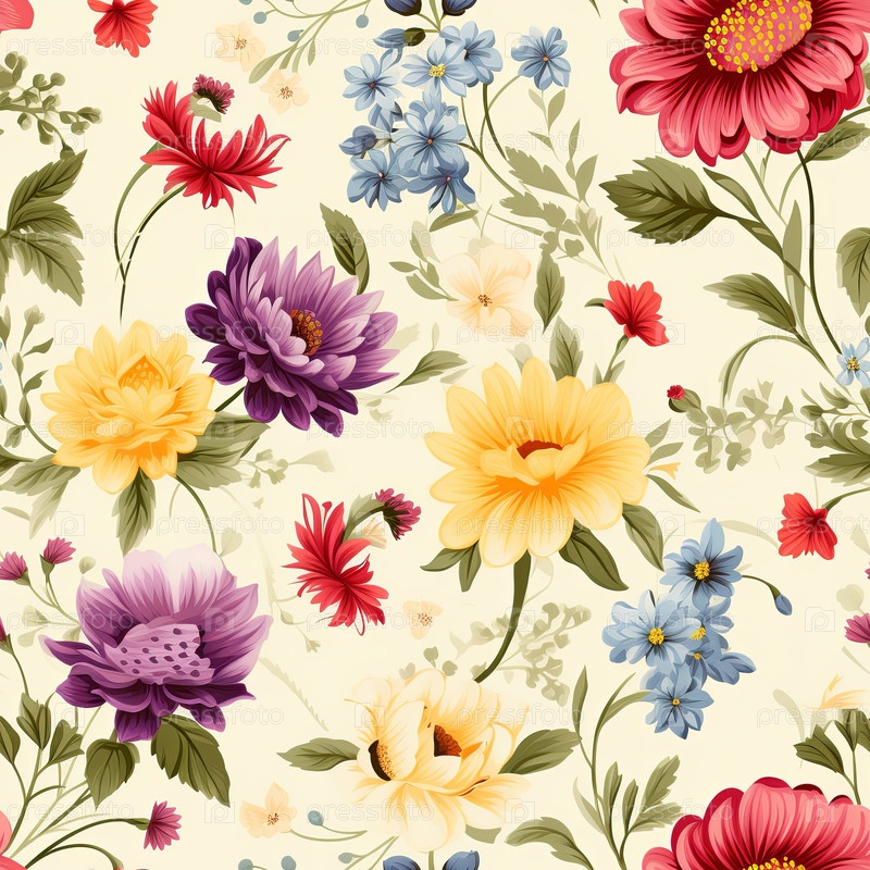 Бесшовный узор. Красочные цветы на кремовом цветовом фоне