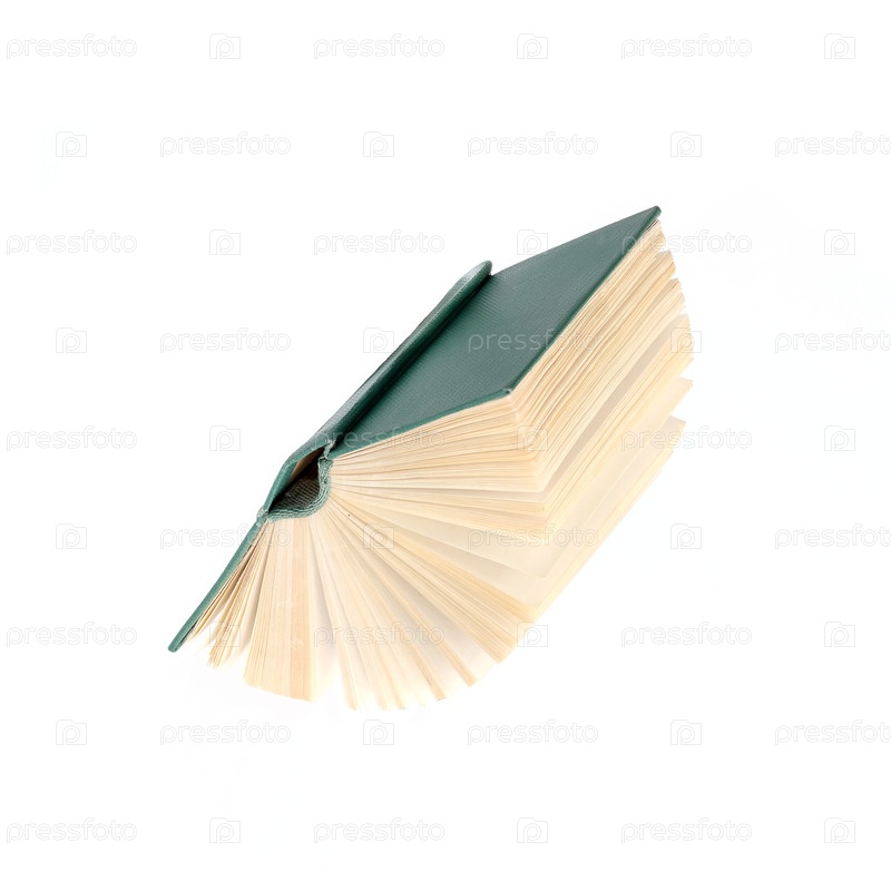 Летящая зеленая книга, изолированная на белом фоне. Элемент дизайна с обтравочным контуром