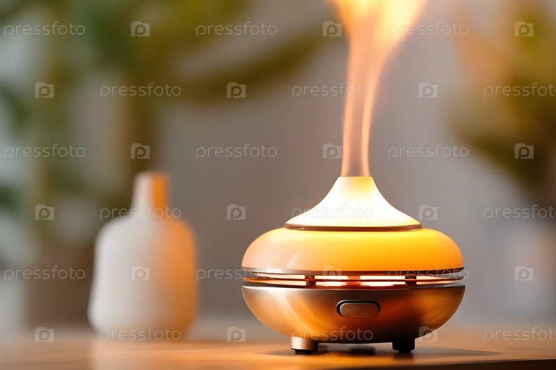 Закрыть вид на ароматическую лампу на столе (небольшая глубина резкости, селективный фокус)