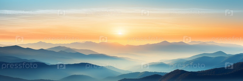 Панорамный вид на горы с восходом солнца. Большой баннер. Пейзажный фон