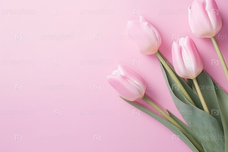 Розовые тюльпаны на розовом фоне с пространством для копирования