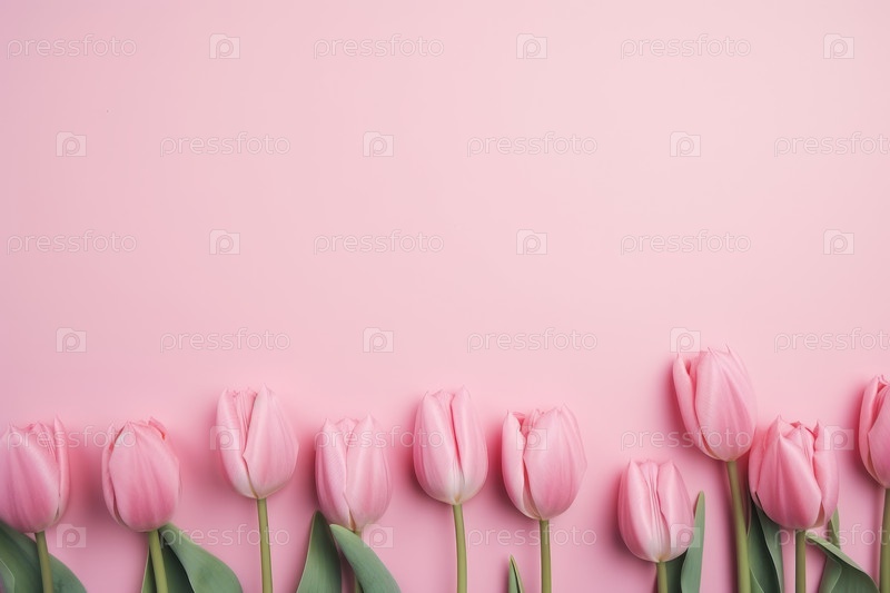 Розовые тюльпаны на розовом фоне с пространством для копирования