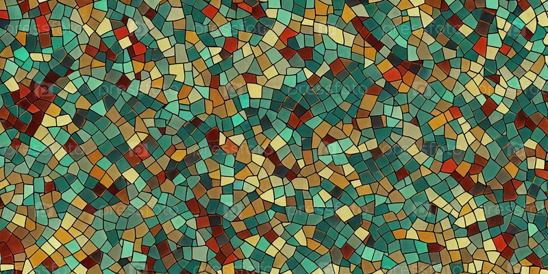 Иллюстрация винтажного мозаичного фона с замысловатым рисунком красочных плиток, напоминающих о древнем ремесленном мастерстве
