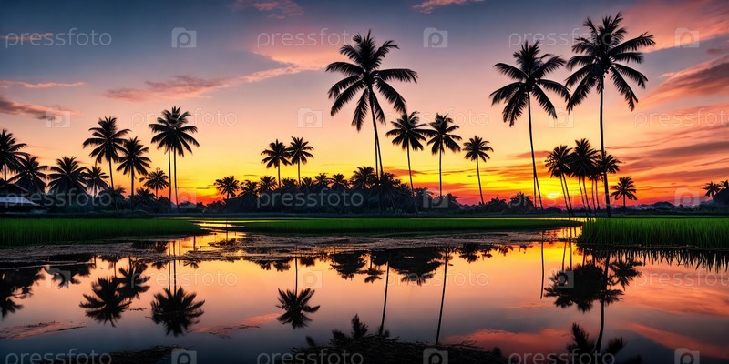 Зеленые рисовые террасы греются на закате