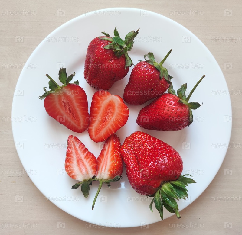 клубника на белой тарелке. ягоды на белом блюде. 草 в белой тарелке。