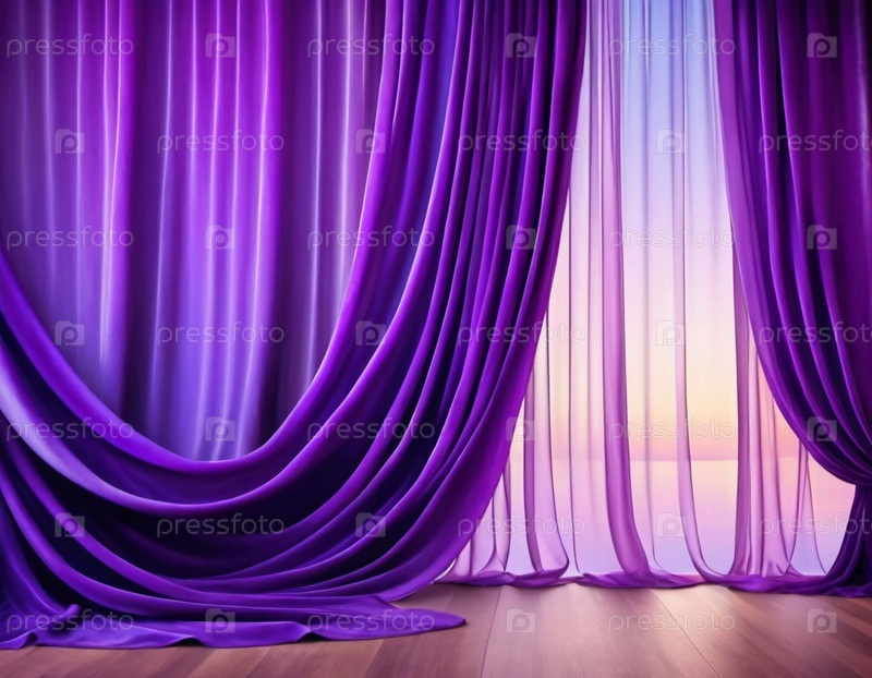 Занавес с мягкими плавными плавными складками. Глубокий фиолетовый цвет и роскошная текстура создают драматическую и элегантную атмосферу. Декорация и дизайн интерьера. Дорогой занавес из богатой ткани. ИИ