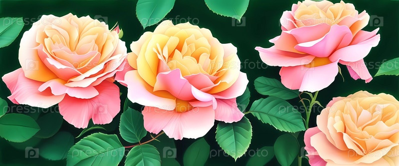 Яркая романтическая живопись отличается пышным расположением красиво цветущих роз в различных оттенках, захватывая сущность любви и природы в красочной обстановке сада при дневном свете. Генерирующий ИИ
