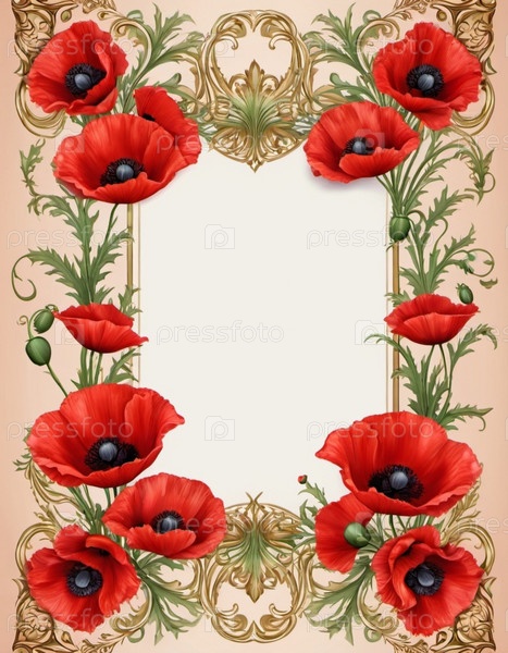 Красные маки, зеленые листья, стебли. Щенки изображены на различных стадиях цветения, причем некоторые полностью открыты, а другие в зародыше. Мягкая спина, создающая нежные романтические чувства. Копируйте пространство. Открытка или макет