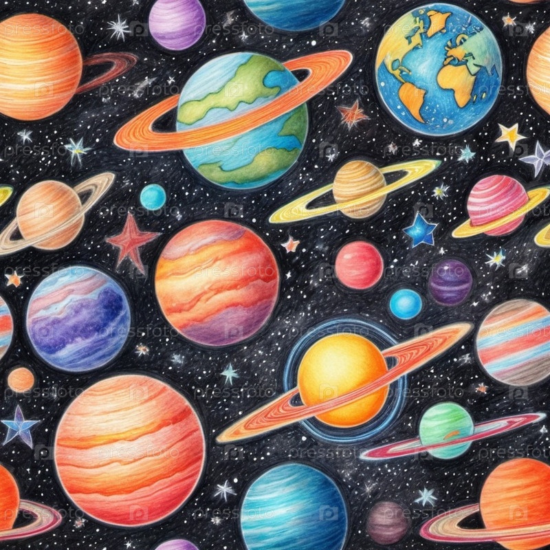 Планетарная система с несколькими планетами, большой ярко окрашенный газовый гигант и скалистая планета. Яркие звезды и обширное пространство темного пространства с галактикой на заднем плане. Космические пространства. Космонавтика. ИИ