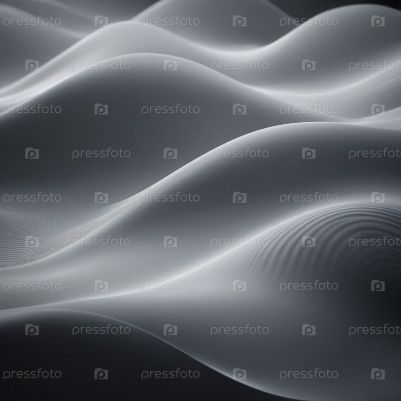 Плавучие 3D-волны в цветах черного и серого создают увлекательный абстрактный рисунок с гладкими кривыми и световым градиентом на темном фоне, который вызывает артистизм и спокойствие