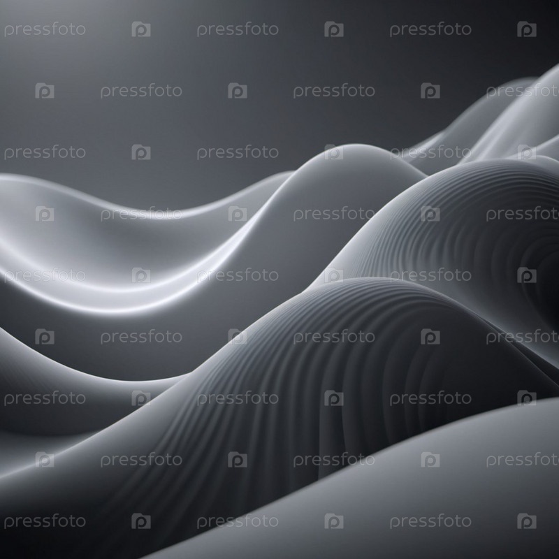 Плавучие 3D-волны в цветах черного и серого создают увлекательный абстрактный рисунок с гладкими кривыми и световым градиентом на темном фоне, который вызывает артистизм и спокойствие