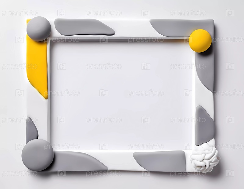 Этот уникальный прямоугольный каркас демонстрирует абстрактный дизайн с серыми и белыми материалами. Яркий желтый и декоративные элементы добавляют игривый штрих, идеально подходящий для художественных дисплеев