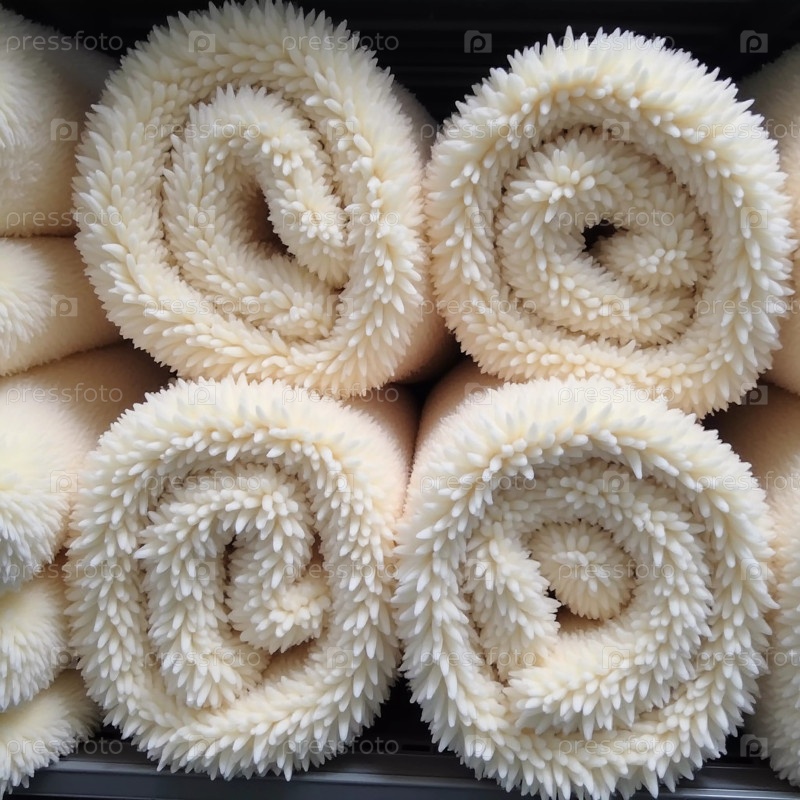 Мягкие, пушистые одеяла свернуты и аккуратно сложены на полках магазинов, демонстрируя различные успокаивающие цвета для тех, кто хочет добавить тепло и комфорт в свой домашний декор. Генерирующий ИИ