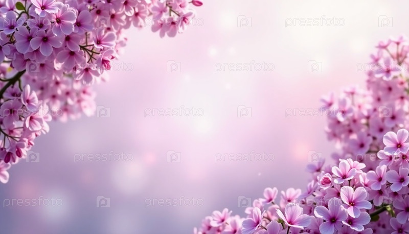 Окруженный скоплениями сиреневых цветов, возникает нежное успокаивающее пустое пространство. Спокойная обстановка вызывает чувство мира. Мягкие оттенки лаванды приглашают зрителей остановиться и поразмышлять. Безмятежность, красота. ИИ